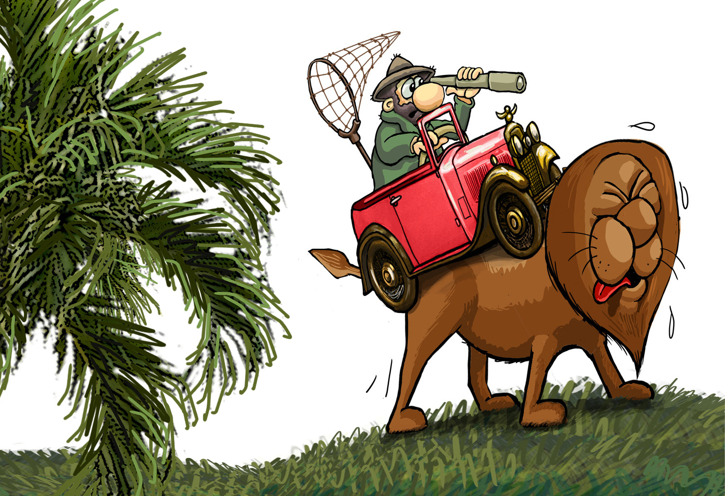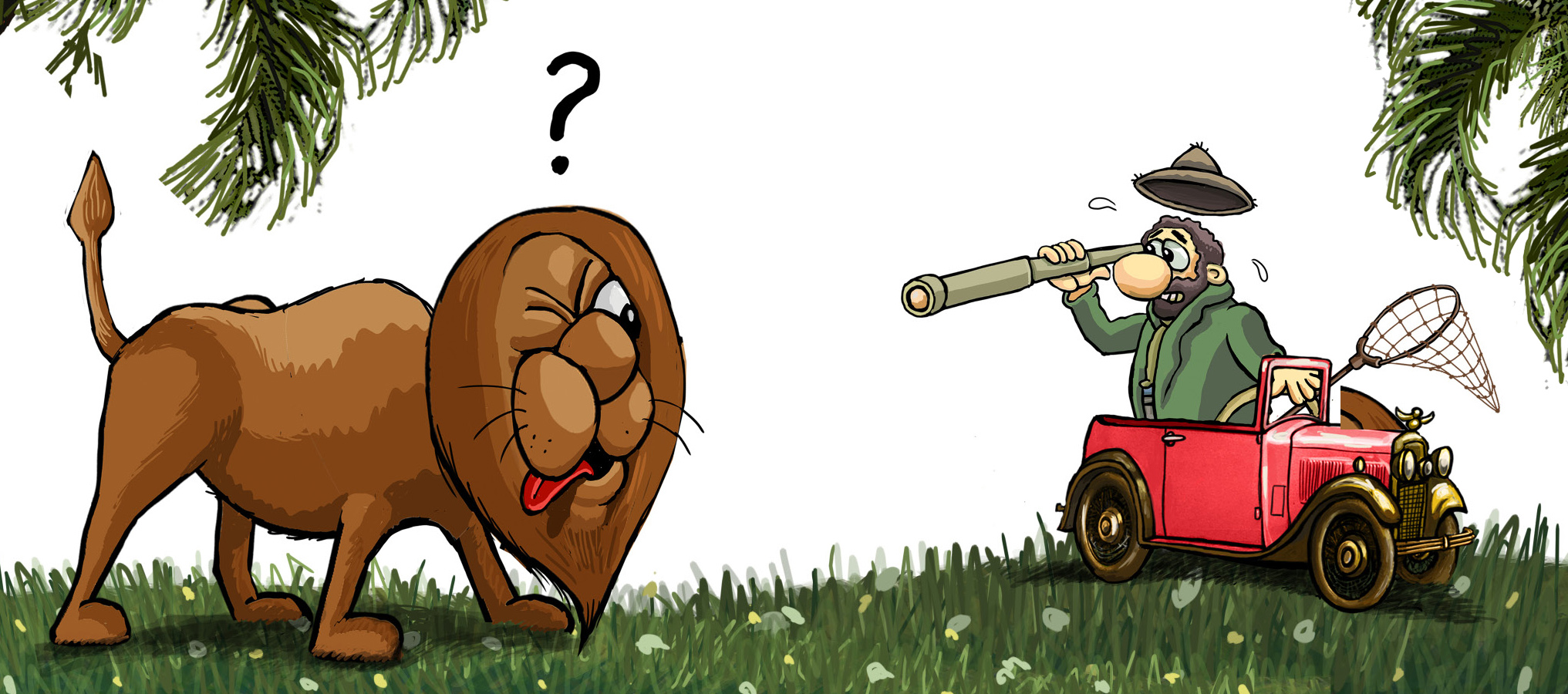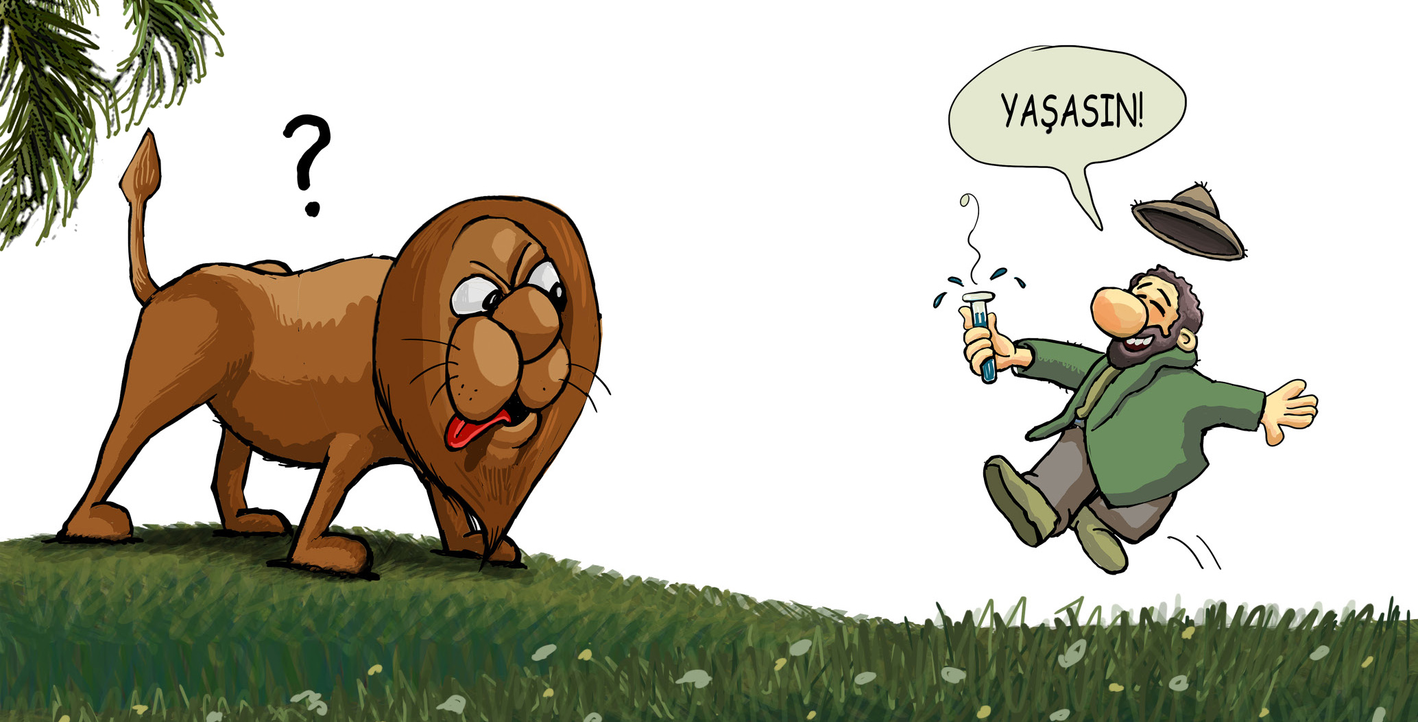 Arif hem korkuyor hem de bilimsel bir merakla Aslanı seyrediyordu.