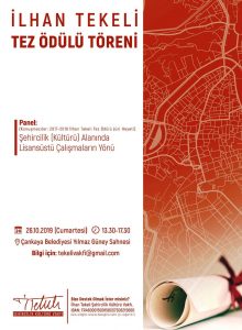 Tarih Vakfı’nın kurucularından, önceki başkanlarından Prof. Dr. İlhan Tekeli adına İlhan Tekeli Şehircilik Kültürü Vakfı (İTŞKV) tarafından düzenlenen ‘İlhan Tekeli Tez Ödülü' 26 Ekim Cumartesi günü saat 13:30’da Çankaya Belediyesi Yılmaz Güney Sahnesi’nde verilecek.