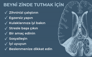 Hafıza, öğrenme, tanıma, iletişim kurma ve karar verme gibi zihinsel becerilerin yaşlanmayla birlikte zayıflaması yaygın görülen bir durum olsa da, bu durum kaçınılmaz bir son değil. Düzenli beslenmeden sosyalleşmeye, yabancı dil öğreniminden bir enstrüman çalmaya uzanan bir dizi yolla beynimizi zinde tutmak mümkün olabilir.