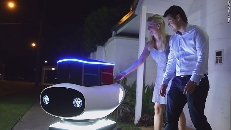 Müşterilerine kapıda pizza teslimatı yapan Domino’s firması ilginç yenilikleriyle ünlüdür. Firma iki yıl önce pazarlama amacıyla bir pizzayı drone ile göndermişti. Şimdi de robotla pizza teslimatı yapmaya hazırlanıyor. Domino’s firmasının Robotic Unit (DRU) robotu, tekerlekler üzerinde hareket eden askeri robotun değiştirilmiş bir biçimi. Küçük pizza taşıyıcısı lazer ve sensörler yardımıyla sokaklarda yön bulacak. Robot saatte 20 km’lik bir hızla hareket edecek. DRU adrese vardığında, alıcı, akıllı telefonuna bir güvenlik kodu girmek zorunda. Böylece robot doğru adrese geldiğini algılayacak. Ancak robot henüz prototip aşamasında. Bilgi için: http://www.ubergizmo.com/2016/03/dominos-reveals-pizza-delivery-robot/