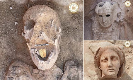 Bir olasılıkla bu kişi hayattayken konuşma yetisini kaybetmişti ya da konuşma zorluğu çekiyordu. Fakat altın dil bazı özel durumlarda da bu tür bozukluklardan bağımsız olarak da mumyaya eklenmiş olabilir diyor arkeologlar. Diğer buluntular arasında bir kadına ait görkemli bir ölü maskesi de yer alıyordu. Bu maske başını göğsüne kadar kapatıyordu. Altın bir çelenk, sekiz mermer büst ve rulo kağıt kalıntıları ise dikkat çeken diğer buluntular.