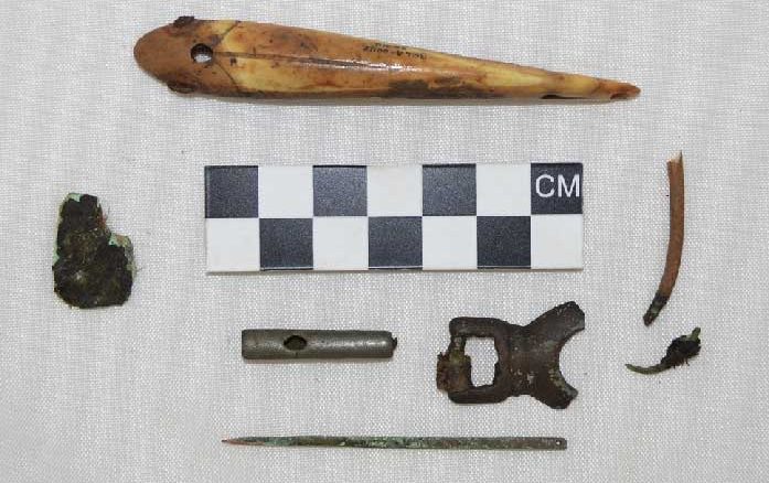 Yeni bulunan metal objeler silindir biçiminde boncuk ve bir toka parçası. Purdue Üniversitesi’nden Kory Cooper’in analiz sonuçlarına göre bu objeler bakır, kalay ve kurşun alaşımından oluşan kurşun bronzundan üretilmiş. Kemer tokasının kenarında bulunan deri parçası radyo karbon yöntemiyle 500-800 yıllık olarak tarihlendirilmiş ancak araştırmacılar tokanın çok daha eski olabileceğini söylüyorlar. Ayrıca tokanın seri olarak üretilmiş olduğunu gösteren kanıtlar da var. Kemer tokası, bir zamanlar Orta Çin’in kuzeyinde at koşumunun bir parçası olarak kullanılan tokalara benziyor. Arkeologlar alaşımların Avrasya’nın herhangi bir yerinde üretildikten sonra ticaret yoluyla Sibirya’ya getirildiğini ve daha sonraları da Bering Boğazı üzerinden Alaska’daki Thule Eskimolarına satıldıklarını tahmin ediyor. Yeni buluntular kıtalar arası metal ticaretinin bilinen ilk arkeolojik kanıtları olması nedeniyle önemli bir keşif sayılır.