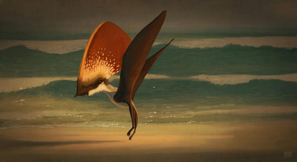 Belçika Kraliyet Doğa Bilimleri Enstitüsü’nde Aude Cincotta yönetiminde çalışan ekip Brezilya’da ortaya çıkarılan, 113 milyon yıllık Tupandactylus imperator pterozorunda bunun kanıtlarını buldular. Uçan dinozorun kanat açıklığı yaklaşık 5 metreydi ve en çarpıcı özelliği başındaki iki kemik mahmuzdan oluşan üçgen bir çıkıntı olmasıydı.. Bu fosil çıkıntıda paleontologlar çok sayıda tüyümsü, dallanmış yapılar fark ettiler. Ayrıntılı analizler sonucunda bu yapıların, bir tüyün klasik yapısına çok benzediği görüldü. Her yapıda uca doğru sivrilen bir sap var, bu sapın neredeyse baştan ucuna kadar kısa ve düz tüyler uzanıyor.