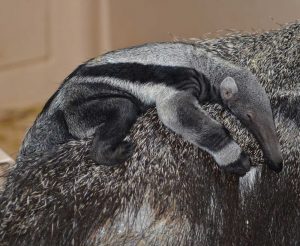 Dev karıncayiyenler genellikle her defasında bir yavru dünyaya getirir ve bu yavru hayatının ilk yılını annesinin sırtında geçirir. Yaklaşık 1.4 kilogram doğan yavru tamamen tüylerle kaplıdır. 4 hafta kadar annesinin karnına sıkıca yapışır ve anne hareket edeceği zaman sırtına tırmanır. Dev karıncayiyen yavruları yaklaşık bir ay içinde annelerinden bağımsız hâle gelir ancak yine de sık sık annelerinin sırtında gezerler. Memeden kesilmeleri yaklaşık 9 aylıkken gerçekleşen dev karıncayiyenler, cinsel olarak olgunlaştıkları 2. yıllarında annelerini terk ederler. Şeritli boynuzlu ağaç kurbağası Şeritli boynuzlu ağaç kurbağasının başında üçgen bir “kask” bulunur. Ekvador, Panama ve Kolombiya’nın bazı bölgelerinde yaşarlar. Bu kurbağaların iribaş evresi yoktur. Tamamen yetişkin kurbağaların minyatür formunda, annelerinin sırtına yapışık yumurtalardan doğarlar. Annelerin uzunluğu 69 milimetreye kadar uzayabilirken yumurtaları da 5 ila 6 mm arasındadır. Kurbağa yavruları yumurtada