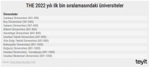 Listeye ilk 500’deki Çankaya Üniversitesi (401-500 bandı) dahil edildiğinde ilk 1000’de toplamda sekiz değil 11 üniversite bulunduğu görülüyor.