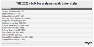 THE 2023 listelerinde ilk 500'de Türkiye'den üç üniversite