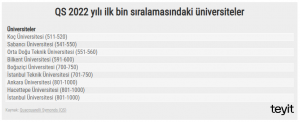 Altay'ın iddiayı dile getirmesinden sonra yayınlanan QS 2023 listelerinde ise ilk 500'de Türkiye'den yalnızca 477. sırada Koç Üniversitesi yer alıyor. İlk binde ise sekiz üniversiteyi görmek mümkün.