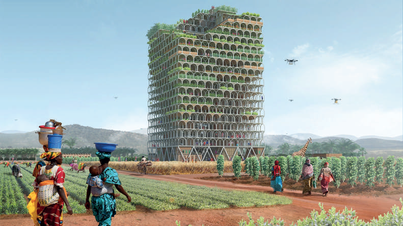 Her yıl çığır açabilecek gökdelen tasarımları için yarışma düzenleyen tasarım dergisi eVolo’nun bu yılki birincisi, Sahraaltı Afrika’daki tüm şehirlerin gıda ihtiyacını karşılayabilecek bir dikey çiftlik tasarımı olan Mashambas gökdeleni. Bu kavramsal gökdelen demonte edilebiliyor ve toplumların ihtiyacı olduğunda farklı alanlara taşınabiliyor.
