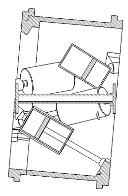 Stator da göbek de dönmeyen parçalar. Statorun dönmemesini bu 6 piston sağlıyor. İlk resme dikkat ederseniz, silindirin göbeğe bağlı olduğu yer ile pistonunun statora bağlı olduğu yer aynı hizada değil, stator saat yönüne doğru hafifçe dönük. Statorun, üzerine bağlanacak rotorun (motorun diğer parçası), jant ve lastiğin dönme hareketlerine karşı durabilmesi, bu dönüklük sâyesinde daha kolay oluyor.