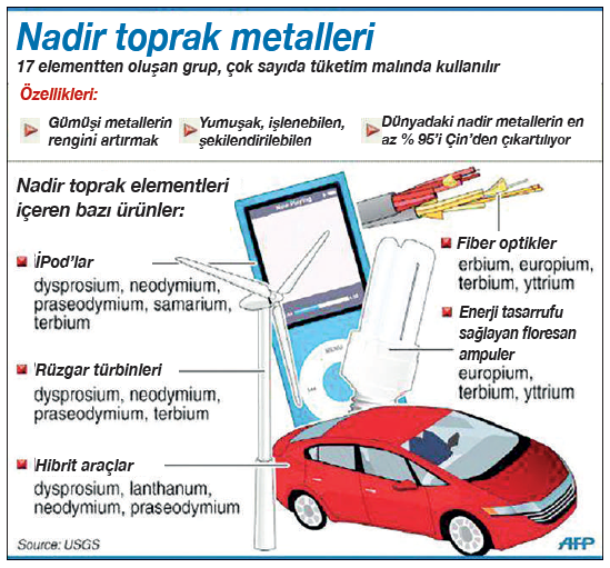 Öte yandan söz konusu miktarlar çıkarılan diğer madenlerle karşılaştırıldığında komik derecede küçük kalmakta. Örneğin yılda 105 bin ton ile bu dalda tartışmasız dünya lideri Çin’in yıllık demir madeni üretimi 2 milyar ton! Ama yukarıda örneklediğimiz gibi nadir toprak elementleri çok az miktarlarda kullanıldıklarında bile etkileri çok büyük oluyor.
